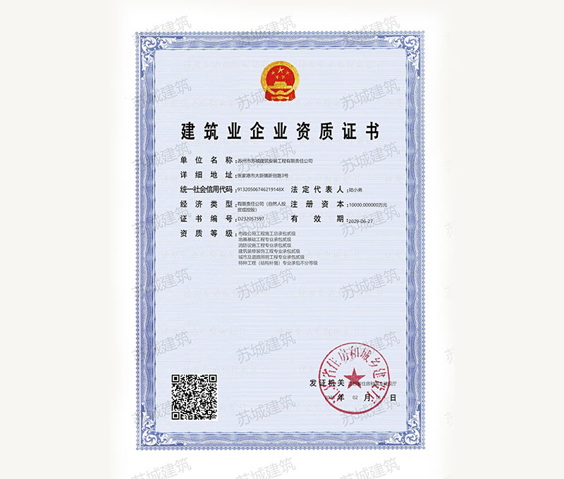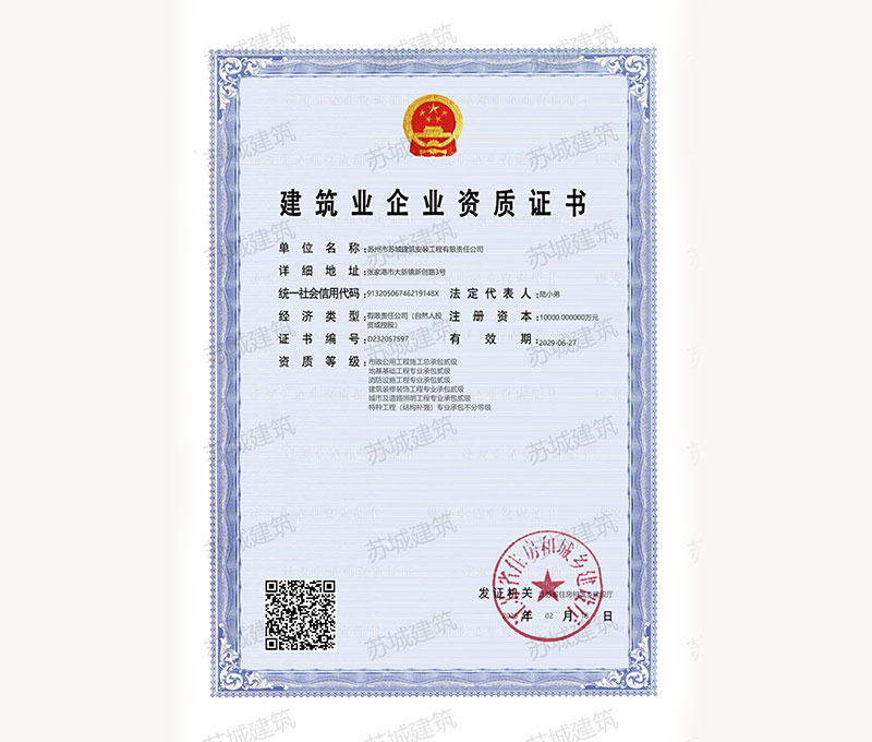 蘇州市蘇城建筑安裝工程有限責(zé)任公司,擁有主項建筑工程施工總承包一級資質(zhì),增項市政公用工程施工總承包二級資質(zhì)和建筑裝修